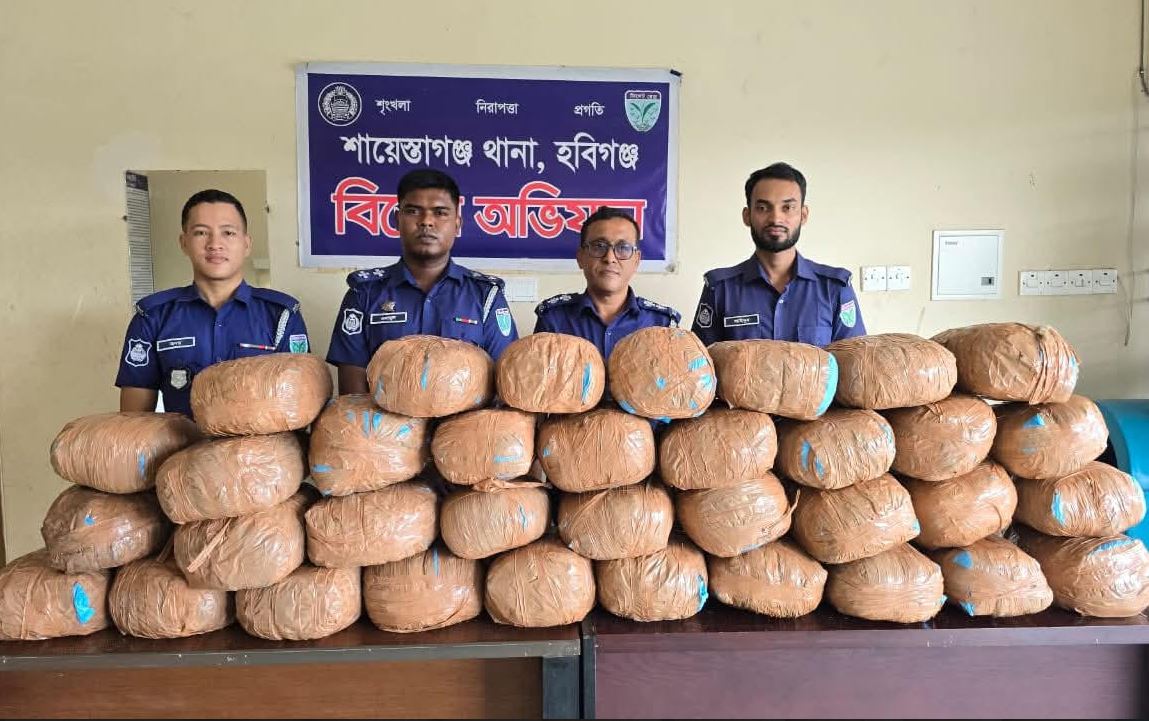 শায়েস্তাগঞ্জে পুলিশের হাতে ৭০ কেজি গাঁজা উদ্ধার