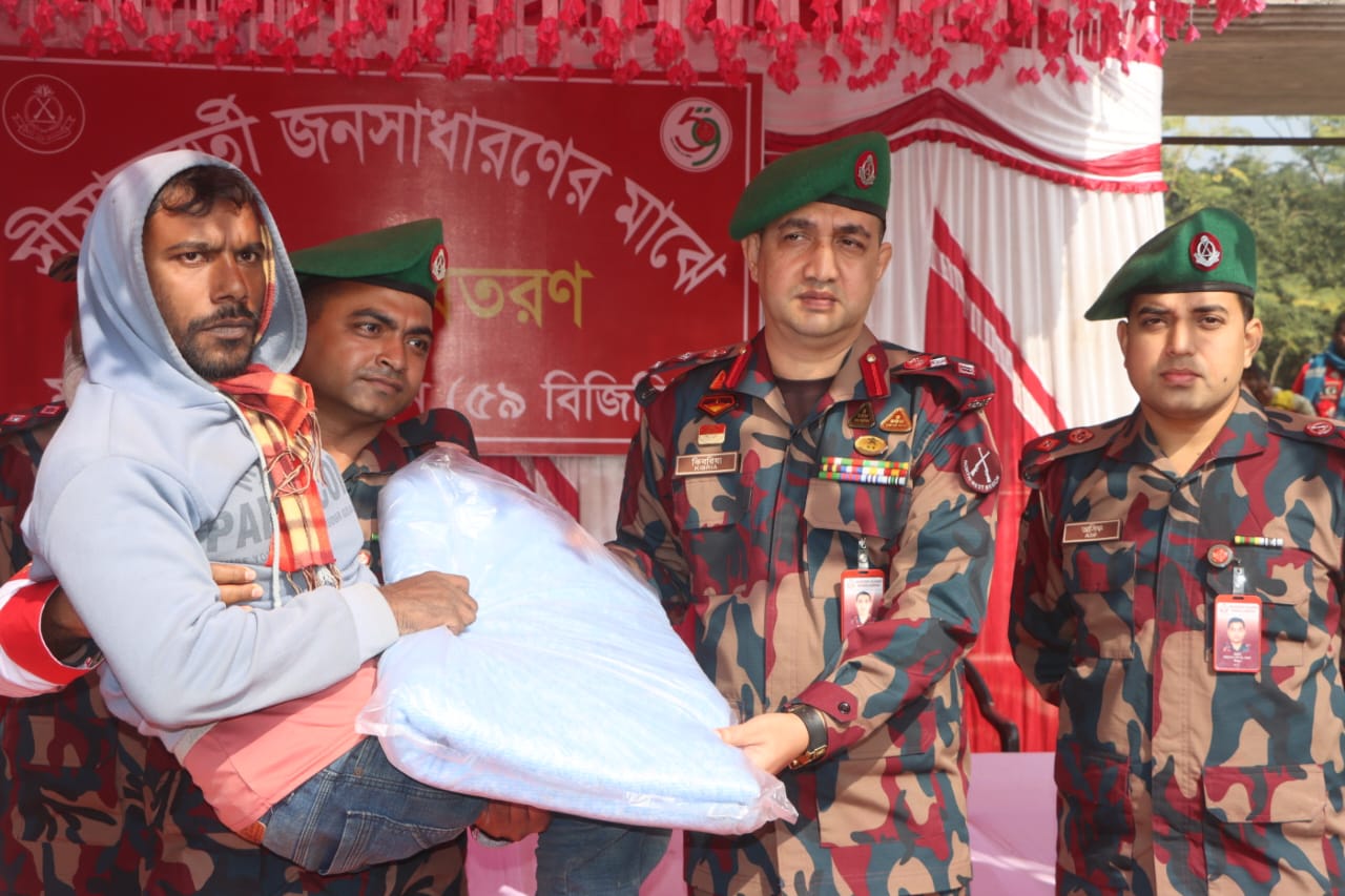 চাঁপাইনবাবগঞ্জে শীতার্তদের জন্য ৫৯ বিজিবি’র কম্বল উপহার