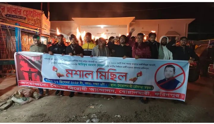 বোয়ালমারীতে কৃষক নেতার বিরুদ্ধে বৈষম্যবিরোধী ছাত্র আন্দোলনের মশাল মিছিল