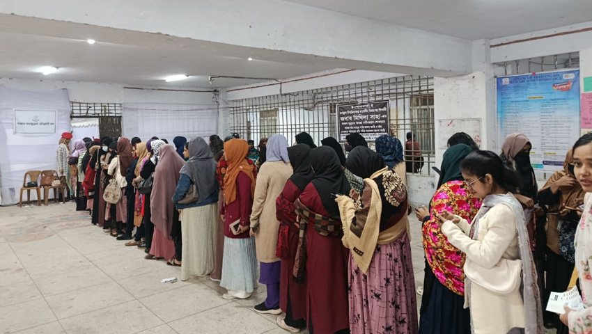 নারী ভোটারদের উৎসাহে জমে উঠেছে জগন্নাথ বিশ্ববিদ্যালয় ভোট