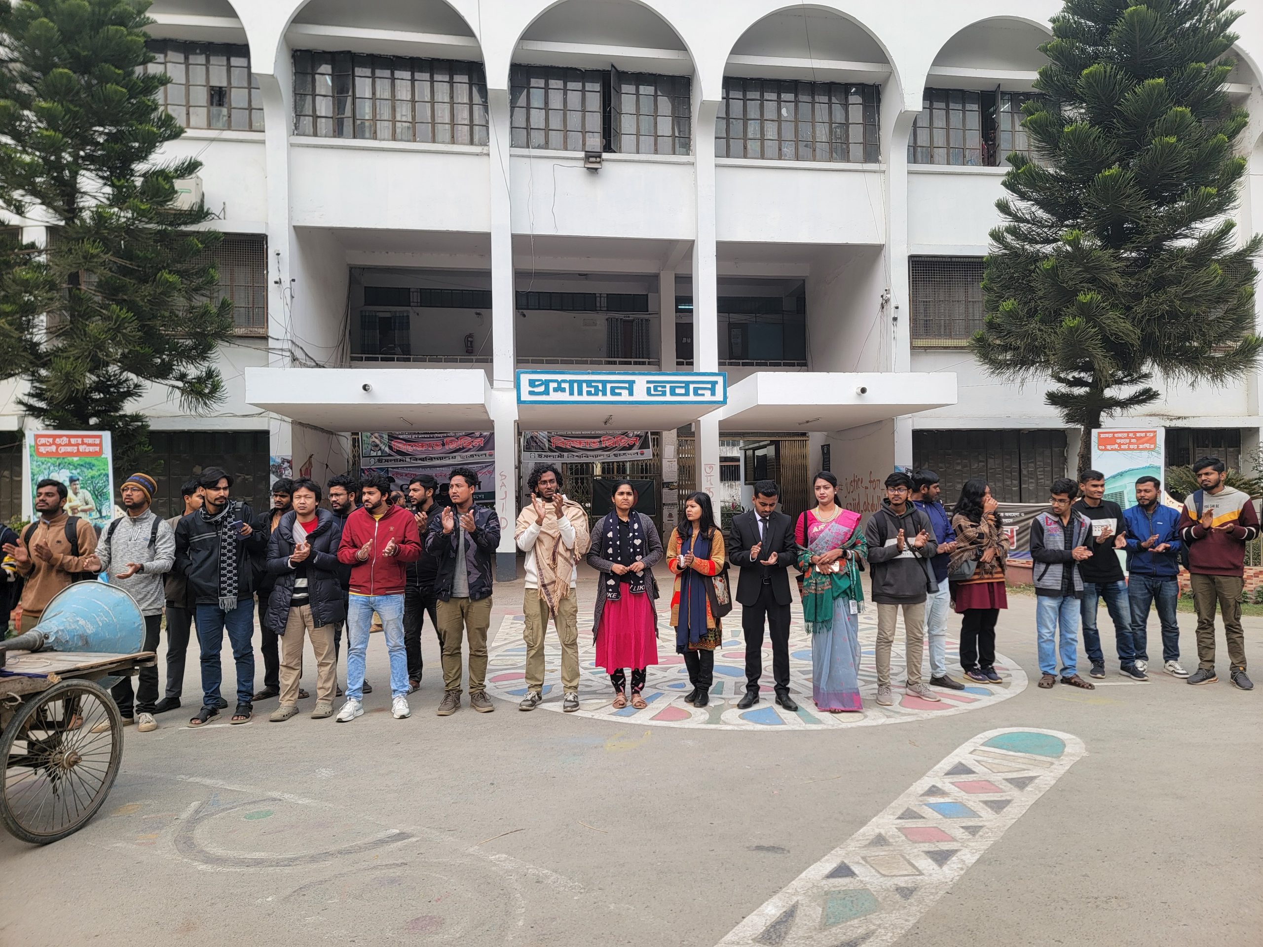 চারুকলা অনুষদের শিক্ষক নিয়োগ পরীক্ষায় অনিয়মের অভিযোগ, রাবিতে শিক্ষার্থীদের মানববন্ধন