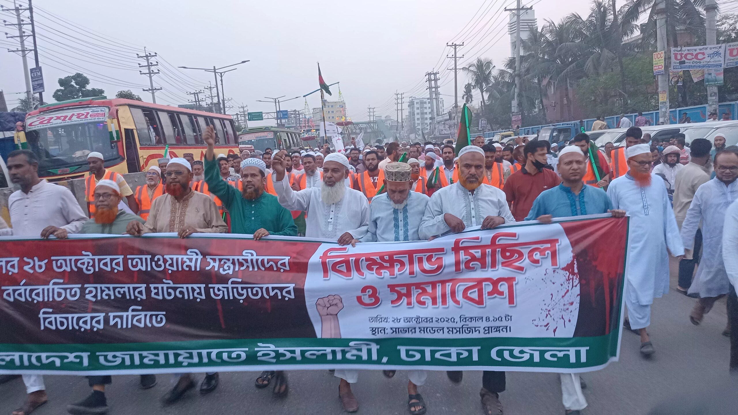 লগি-বৈঠার ঘটনায় সাভারে জামায়াত-শিবিরের বিক্ষোভ মিছিল ও সমাবেশ