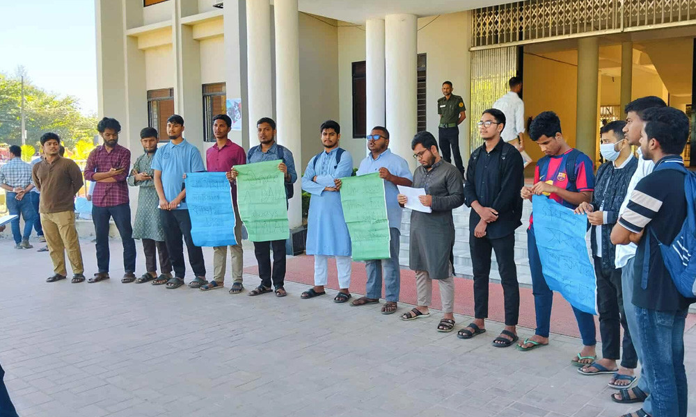 হাসিনার রায়ে প্রতিবাদ জানানো শিক্ষকদের শাস্তির দাবিতে নজরুল বিশ্ববিদ্যালয়ে মানববন্ধন