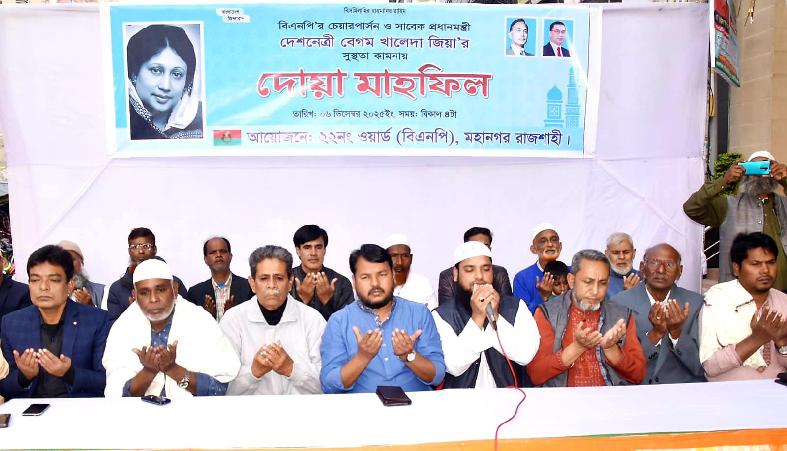 বেগম জিয়ার সুস্থতা কামনায় রাজশাহীতে ২২ নং ওয়ার্ড বিএনপির উদ্যোগে নেতাকর্মীদের দোয়া মাহফিল