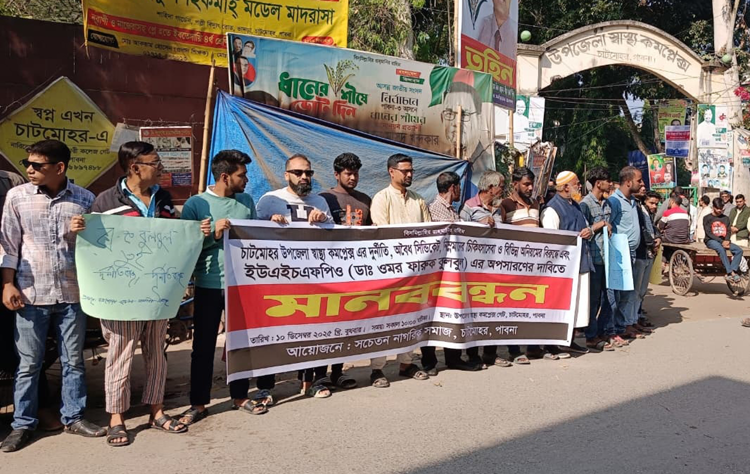 চাটমোহরে ‘গরিবের ডাক্তার’ বদলী বাতিল ও স্বাস্থ্য কর্মকর্তার অপসারণ দাবিতে মানববন্ধন