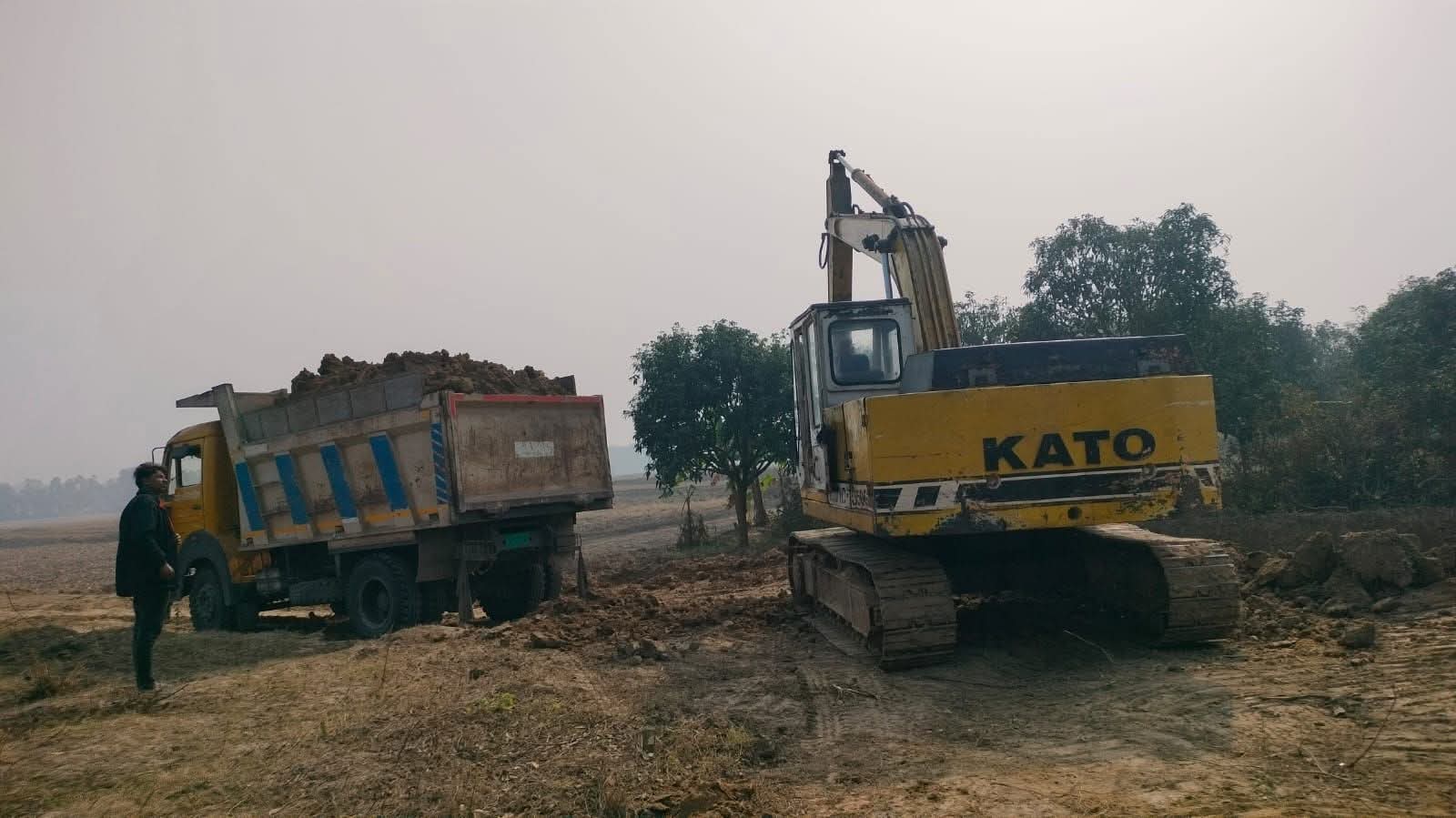 চাঁপাইনবাবগঞ্জে পাহাড় ও ফসলী জমির মাটি কাটার সময় প্রশাসনের অভিযান