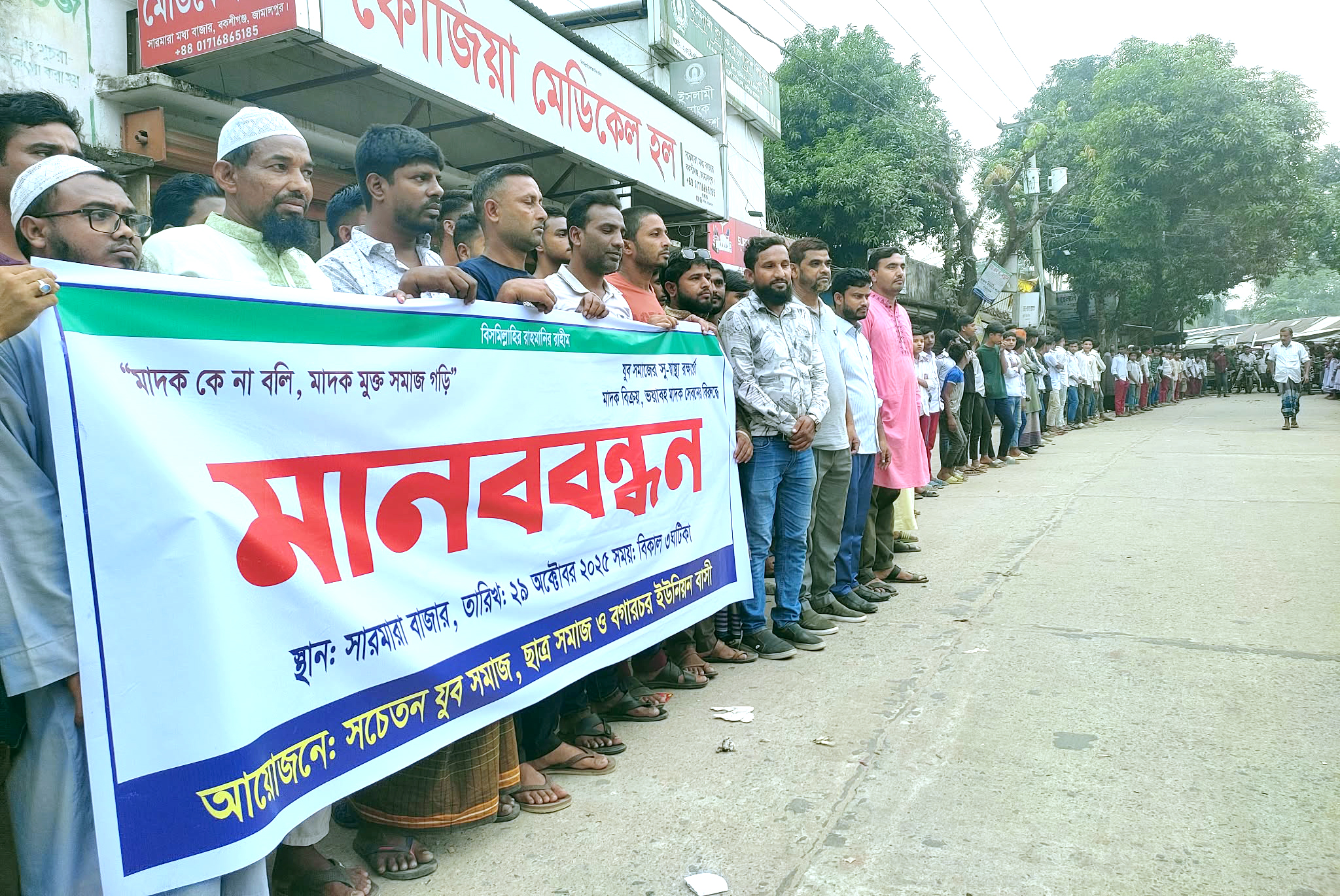 বকশীগঞ্জে মাদকবিরোধী মানববন্ধন: মাদক ব্যবসায়ী ও চোরাচালানকারীদের গ্রেপ্তারের দাবি