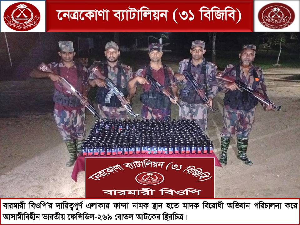 নেত্রকোণায় বিজিবির অভিযানে ২৬৯ বোতল ফেন্সিডিল উদ্ধার