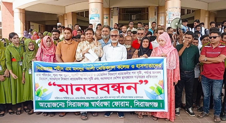‘ক্যাথ-ল্যাব’ সরানোর প্রতিবাদে সিরাজগঞ্জে মানববন্ধন